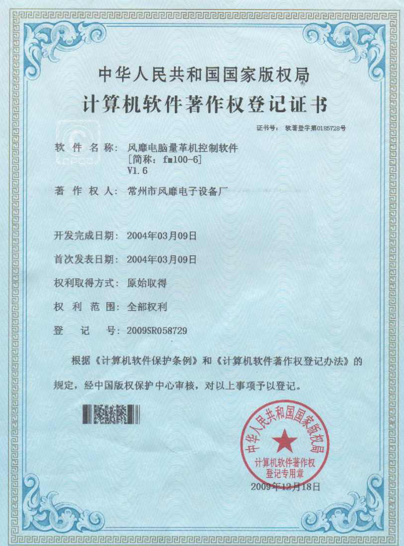 软件著作权登记证:风靡电